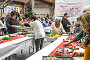 Seit Tagen glühten die Backöfen und verbreiteten den Duft von Weihnachten! In der MANZ-Backofenwelt in Creglingen-Münster liefen in der Woche vor dem 1. Adventswochende die Vorbereitungen für die Weihnachtsschaubäckerei auf Hochtouren. Hier entstand nicht nur köstliches Gebäck, sondern auch eine herrliche weihnachtliche Atmosphäre, die langsam jeden Winkel erfüllte. Von Freitag, den 29. November bis Sonntag, den 1. Dezember jeweils von 10-17 Uhr konnten die Besucher in die Magie des Backens und der festlichen Stimmung eintauchen! Neben Ausstellung und Vorführung von verschiedensten Backofenmodellen, Teigknetmaschinen und Co., welche die Herzen aller Bäcker und auch Backbegeisterten höherschlagen ließ, konnte man natürlich auch ein reiches Sortiment an Backzubehör für die heimische adventliche Backstube vorfinden - von Springerle- und Ausstechformen, über Lebkuchenglocken und Schneeballen-Zange, bis hin zu den notwendigen Zutaten und Gewürzen - eben einfach alles, was es zum weihnachtlichen Backen benötigt. Auf über 5.000 m² erwartete den Besuchern in der Backofenmanufaktur ein zauberhaftes und unterhaltsames Erlebnis mit unzähligen Leckereien zum Genießen - egal ob zum Frühstück, Mittagessen oder Kaffee und Kuchen.